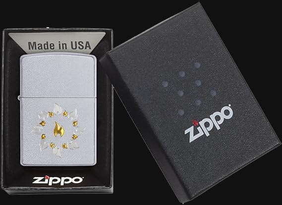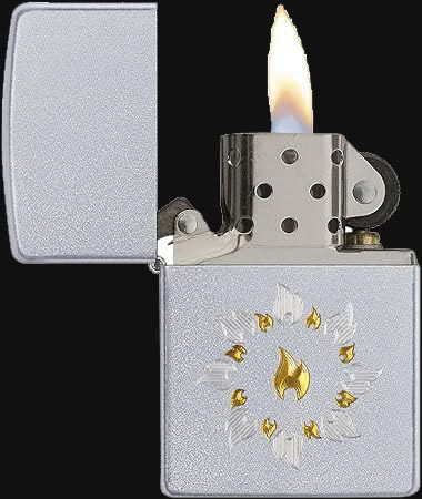 سبک بدنه فندک زیپو 21192 کلاسیک و فینیش بدنه آن نقره ای اطلسی است. پترنی مدور از درخشش شعله های طلایی و نقره ای بر روی بدنه این فندک زیپو با استفاده از تکنیک حکاکی لیزری ایجاد شده است.